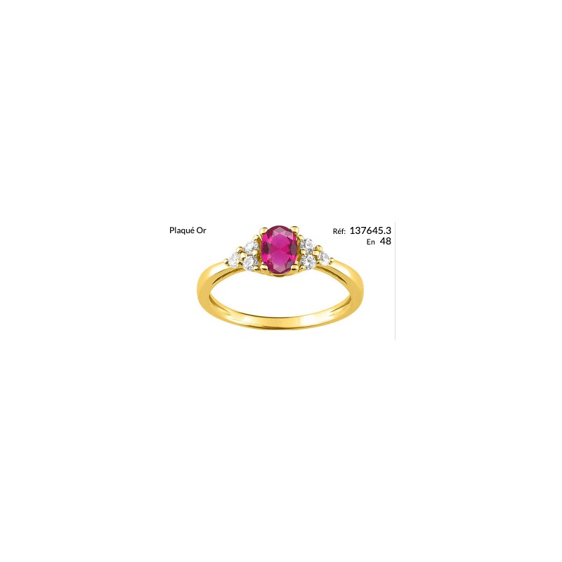 Bague plaqué zirconium Bag. oz.blc+rouge rubis plor