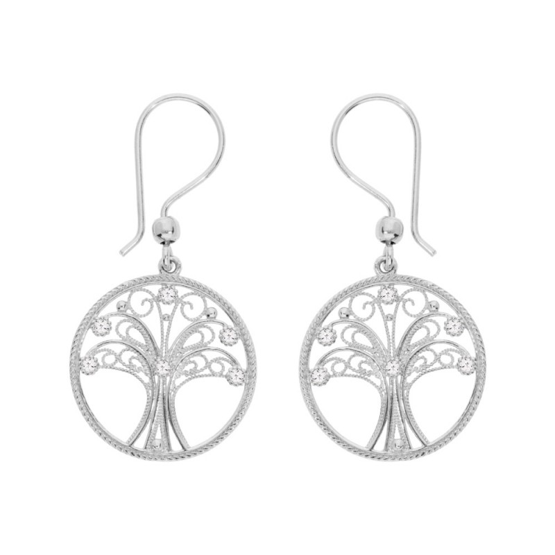 Boucles d'oreilles argent zirconium BO ARGENT RHODIE CROCHET ARBRE DE VIE FILIGR