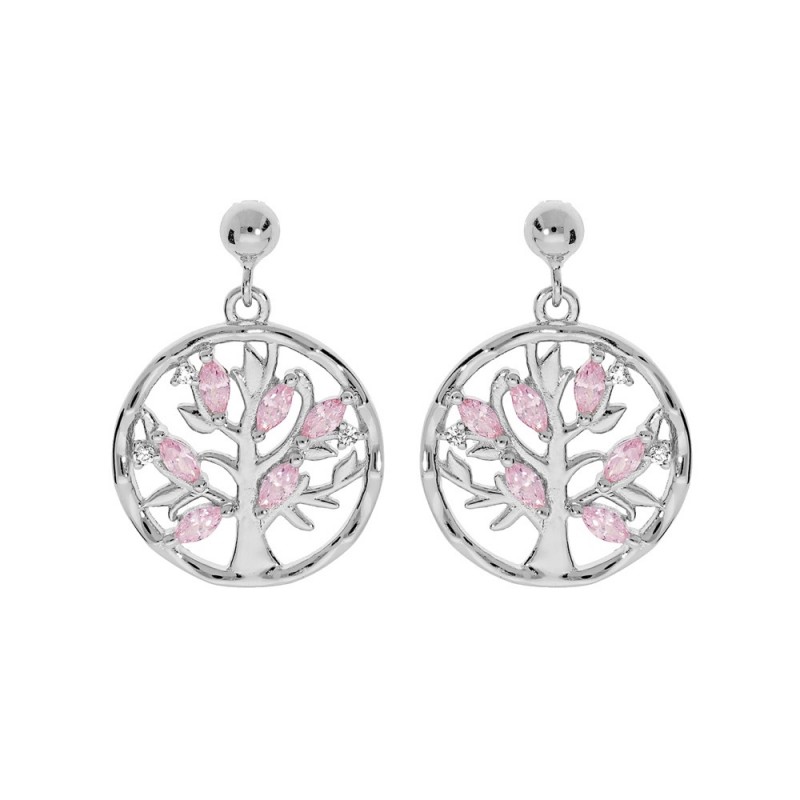 Boucles d'oreilles argent zirconium BO TIGE ARGENT RHODIE PENDENTIF ARBRE DE VIE