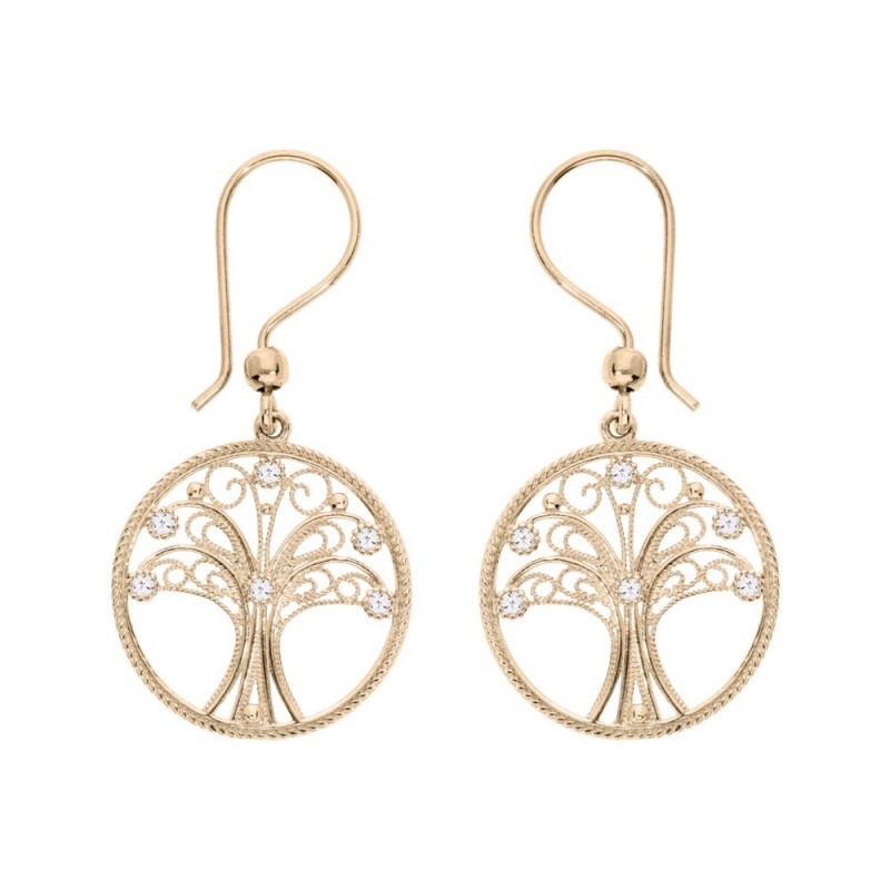 Boucles d'oreilles plaqué zirconium BO PLAQUÉ OR CROCHET ARBRE DE VIE FILIGRANE
