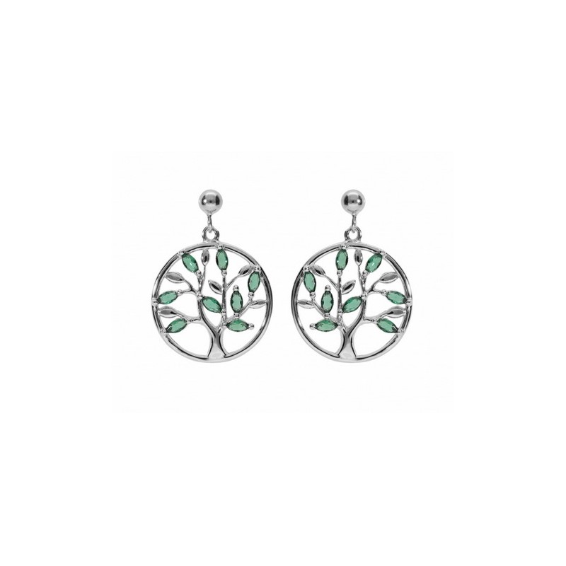 Boucles d'oreilles argent zirconium BO TIGE ARGENT RHODIE PENDANTE CERCLE ARBRE