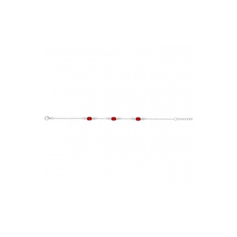 Bracelet argent zirconium BRAC. ARGT. 3 OZ ROUGE ET 6 OZ - 16+3CM