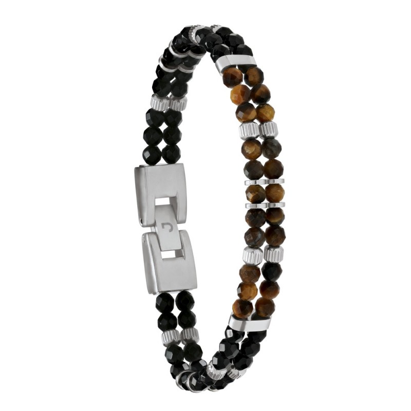 Bracelet acier JOURDAN ARGOS- BRACELET AGATE NOIRE, OEIL DE TIGRE, ACIER