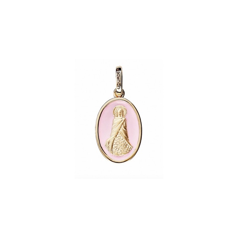 Médaille plaqué PENDENTIF PLAQUÉ OR OVALE SAINTE SARA FOND ROSE PALE