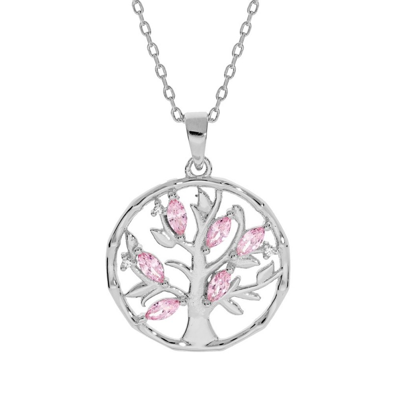 Collier argent zirconium COLLIER ARGENT RHODIE PENDENTIF ARBRE DE VIE OXYDES FUS