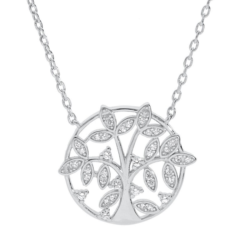 Collier argent zirconium COLLIER ARGENT RHODIE ROND ARBRE DE VIE OXYDES BLANCS S